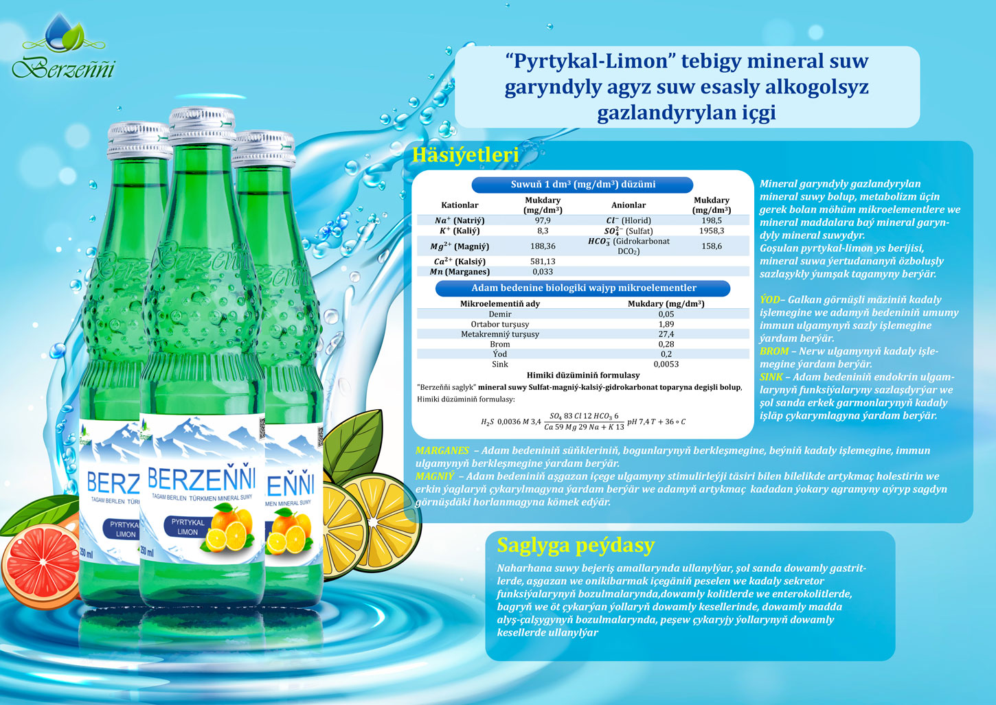 "Pyrtykal-Limon” tebigy mineral suw garyndyly agyz suw esasly alkogolsyz gazlandyrylan içgi
