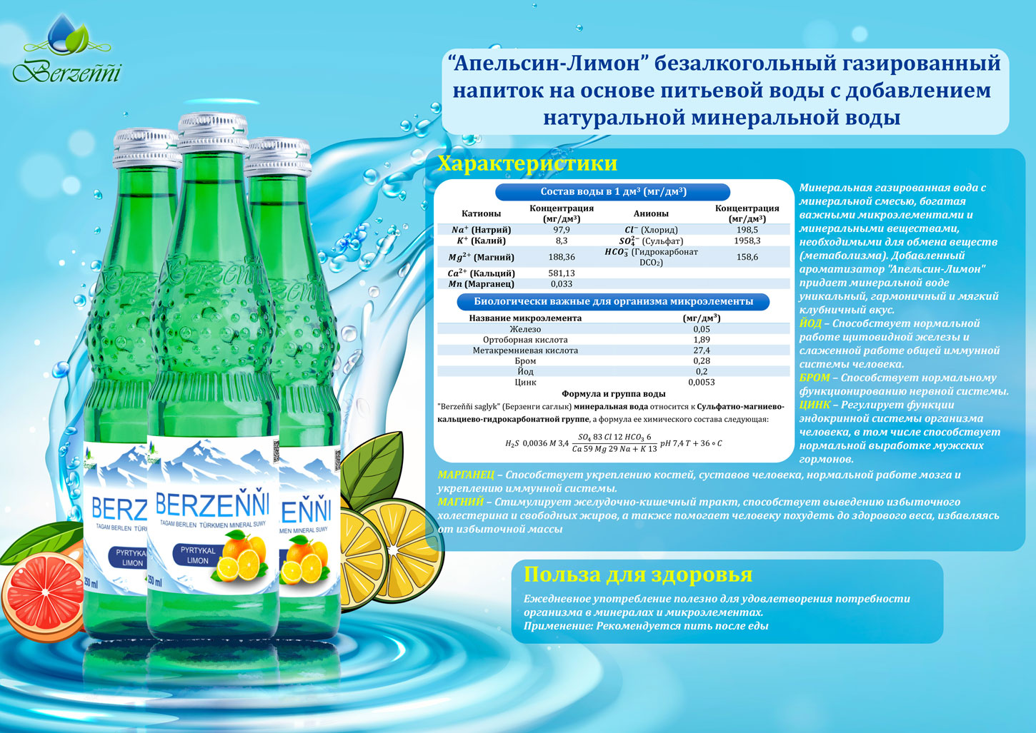 "Апельсин-Лимон" безалкогольный газированный напиток на основе питьевой воды с добавлением натуральной минеральной воды