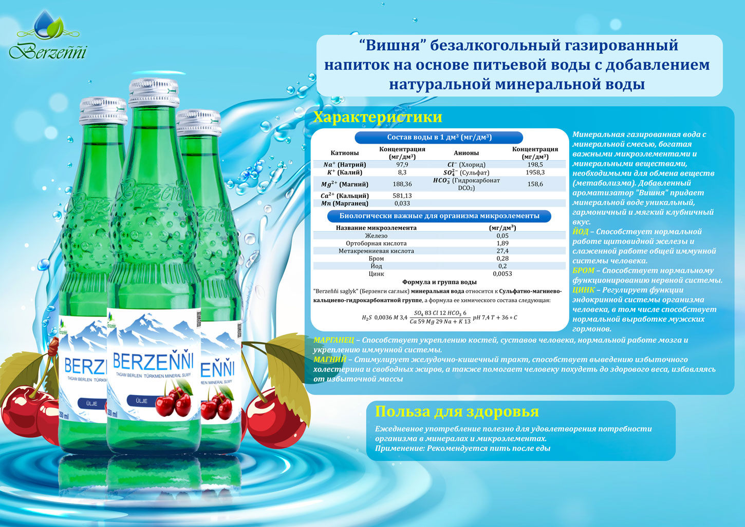 "Вишня" безалкогольный газированный напиток на основе питьевой воды с добавлением натуральной минеральной воды